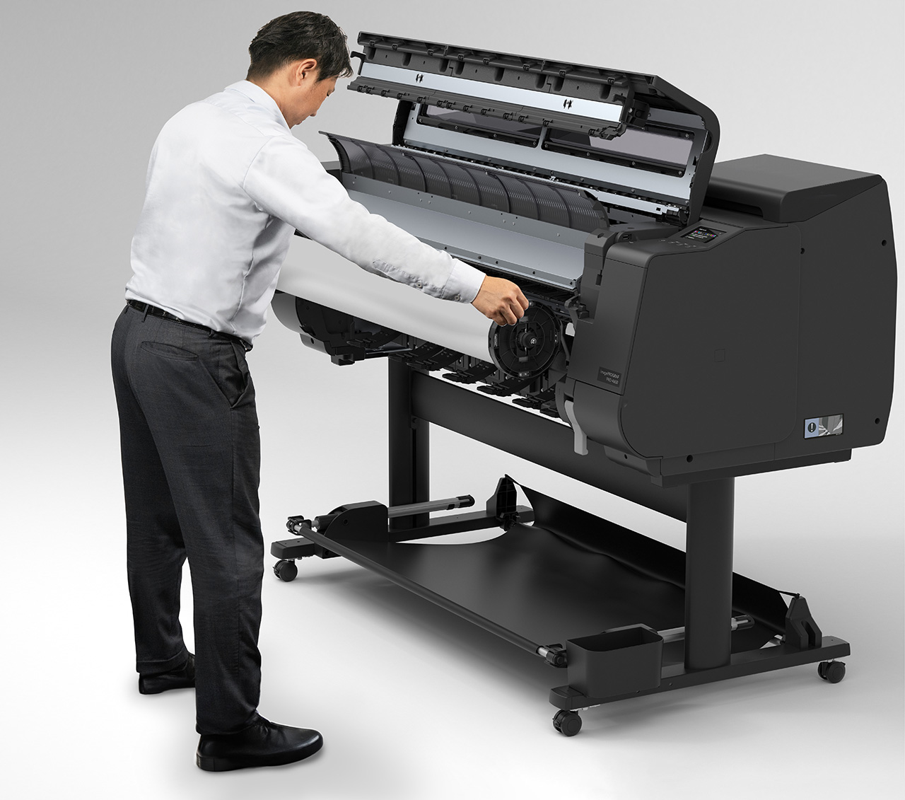 Automatische rolwisseling, geïntegreerde kleurkalibratie, interne verlichting (LED), indicator voor mediaformaat en automatische printkopuitlijning zorgen voor een gestroomlijnde workflow en consistente printkwaliteit.