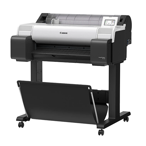 De Canon imagePROGRAF TM-240 met onderstel biedt krachtige prestaties en een praktische ergonomische opstelling voor veelzijdig en efficiënt grootformaat printen.