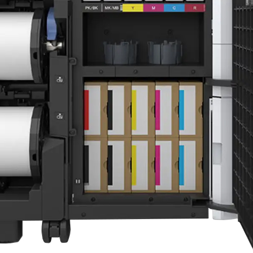 De SC-T3700E maakt gebruik van UltraChrome XD3-pigmentinkten in de kleuren Photo Black, Matte Black, Cyaan, Magenta, Geel en Rood. Met inktcartridges beschikbaar in 350 ml en 700 ml kunnen gebruikers de optimale capaciteit kiezen voor hun printbehoeften, wat zorgt voor lagere operationele kosten en minimale onderbrekingen.